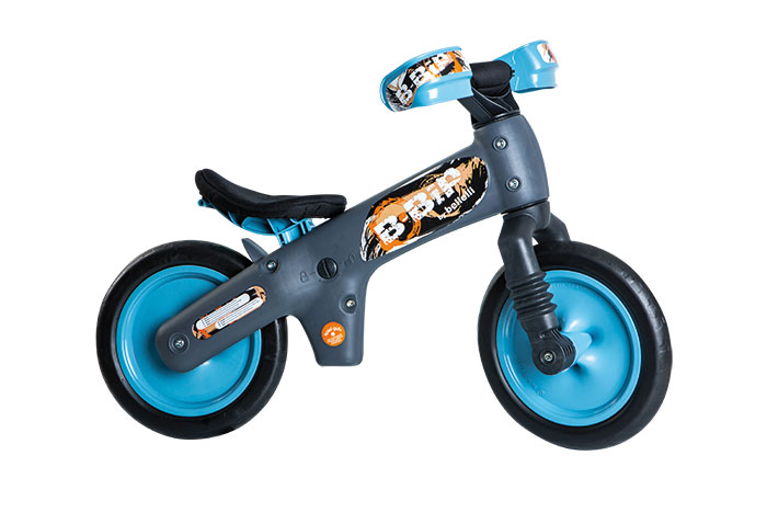 Pedál nélküli gyermekkerékpár. Fejleszti az egyensúlyérzéket, segítségével könnyebben tanulnak meg két keréken kerékpározni a gyerekek, így a későbbiekben feleslegessé válik a kitámasztó kerekek használata. Kényelmes, levehető és mosható ülésszivacs, könnyen tisztítható műanyag váz. Szerszám nélkül (érmével) állítható ülésmagasság. Minden apró részletében a gyerekek biztonságát szem előtt tartó dizájn: rejtett csavarok, szivacsozott, aláfordulás-gátlóval ellátott kormány, extra nagy kézvédő, küllő nélküli, defektmentes kerekek, mérgező anyagoktól mentes kivitel. Maximum teherbírás 30 kg, 2-5 éves korig használható. Szürke/narancs, szürke/pink, fehér/ pink, fehér/zöld vagy fehér/piros színekben.