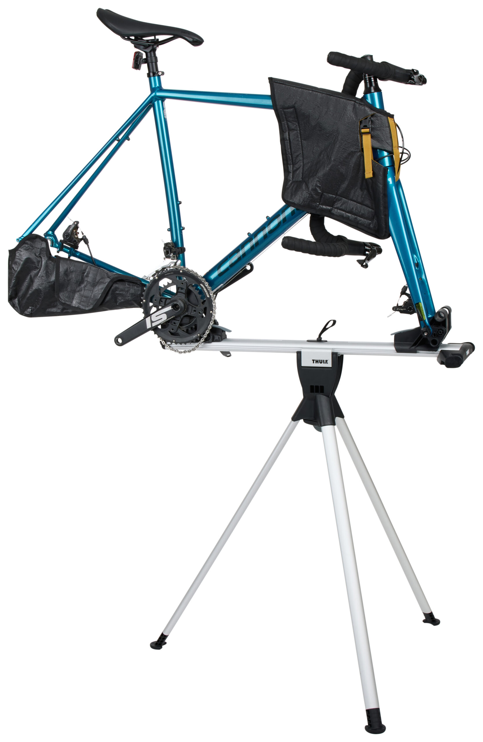 - A kerékpár könnyen rögzíthető az állványhoz a táskában, a biztonságos szállításért
