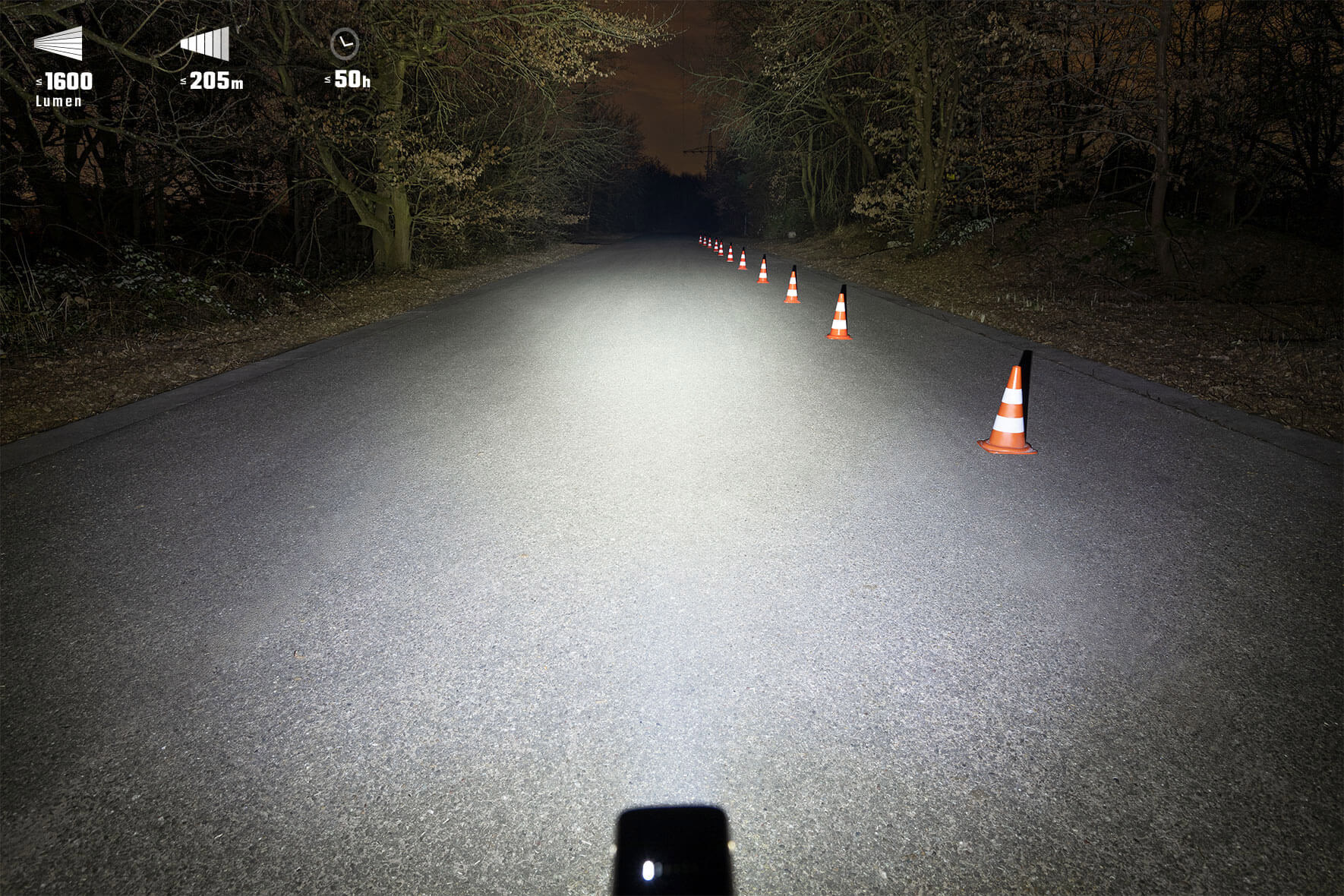 Az egyenletes fénykévének köszönhetően mindig tisztán látod az utat, észreveszed az alacsonyan lógó ágakat és a közeledő kanyarokat is időben.