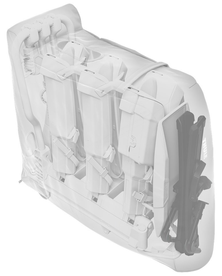 Kifejezetten a Thule EasyFold 3 háromkerékpáros tartóhoz tervezték, így tökéletesen passzol, és szállítás közben nem mozdul el.